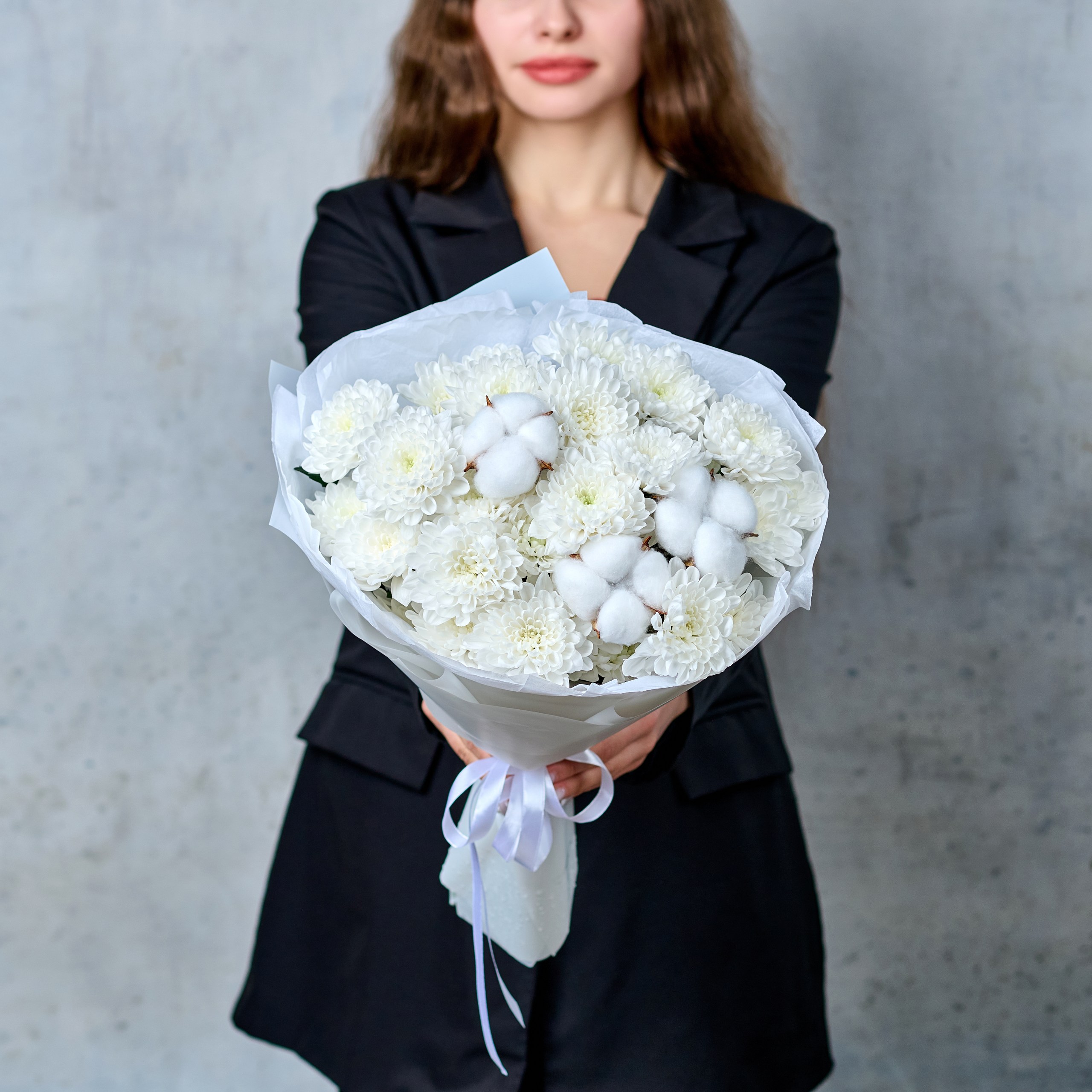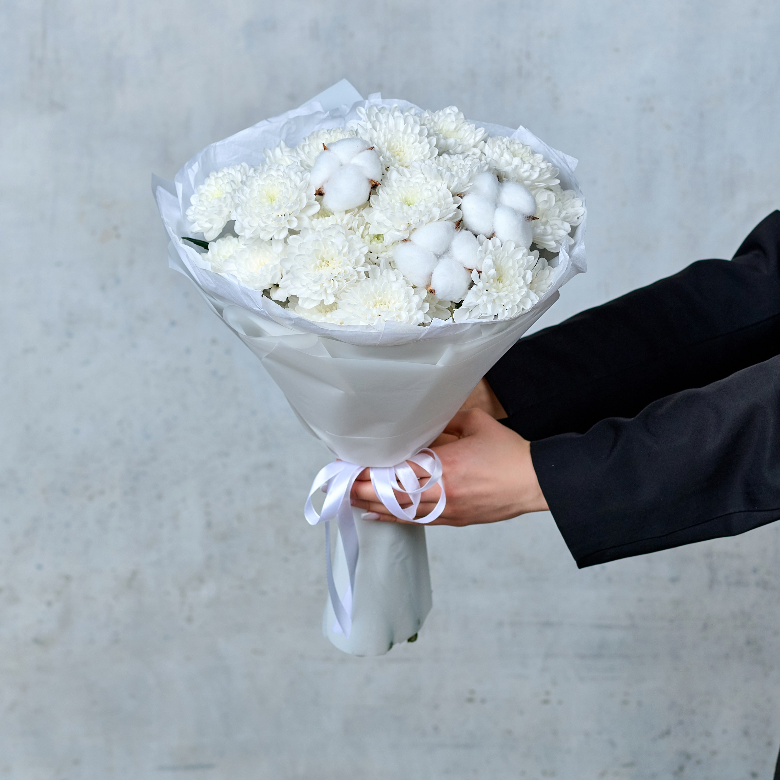 Букет из хризантем с хлопком