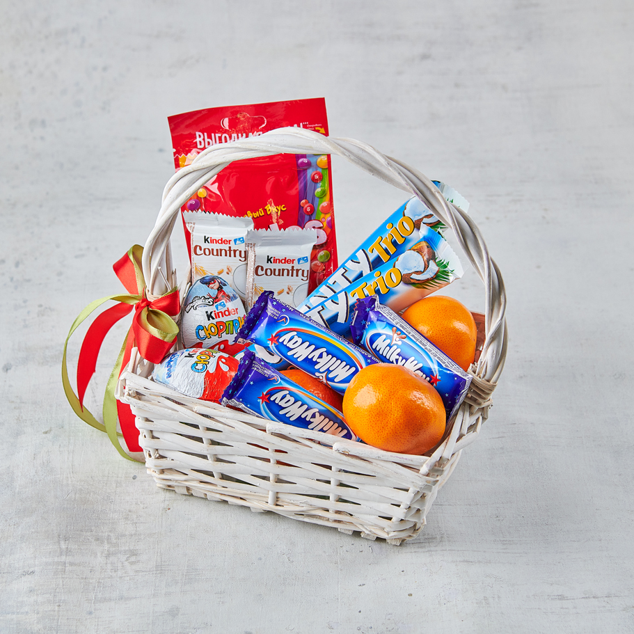 Сладкая композиция с ароматами рождества - это, когда чувствуется запах цитрусовых, видно как открываются цветные упаковки и слышен звонкий смех близких. Возможны небольшие изменения элементов. Общий вид и композиция букета будет сохранена.