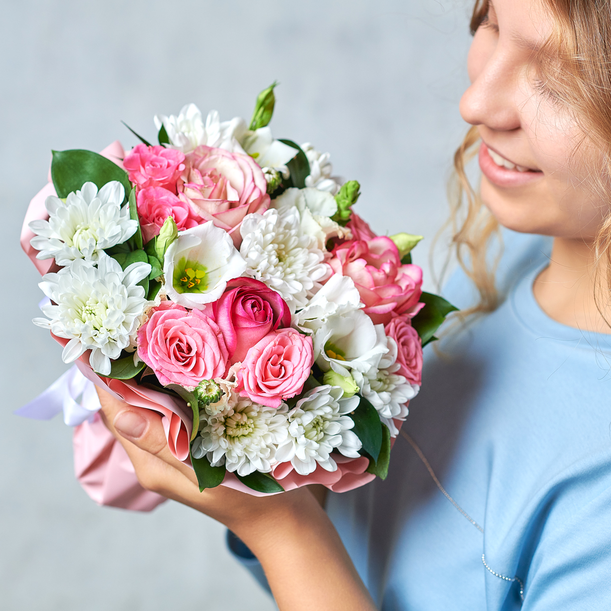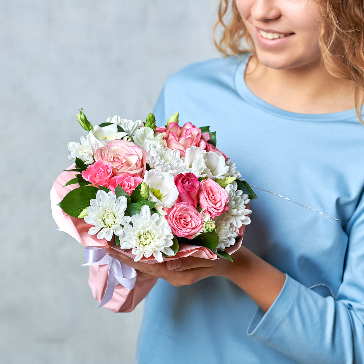 Роскошное классическое сочетание в беспроигрышной гамме. Подойдет в качестве милого комплимента, в качестве дополнения к подарку или просто для теплых прогулок по вечернему городу. Возможны небольшие изменения элементов. Общий вид и композиция букета будет сохранена.