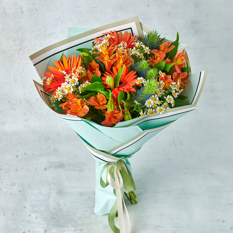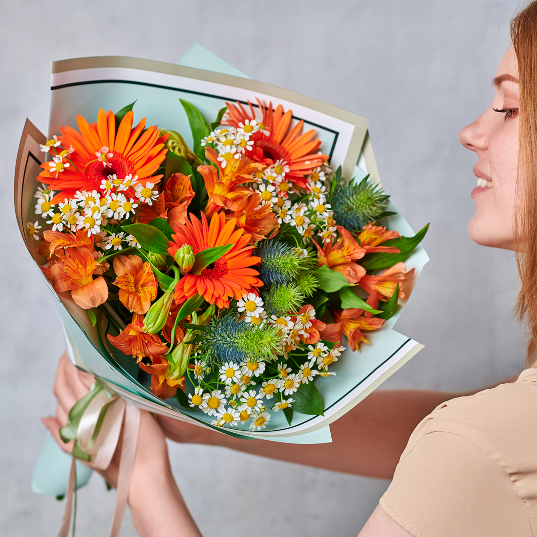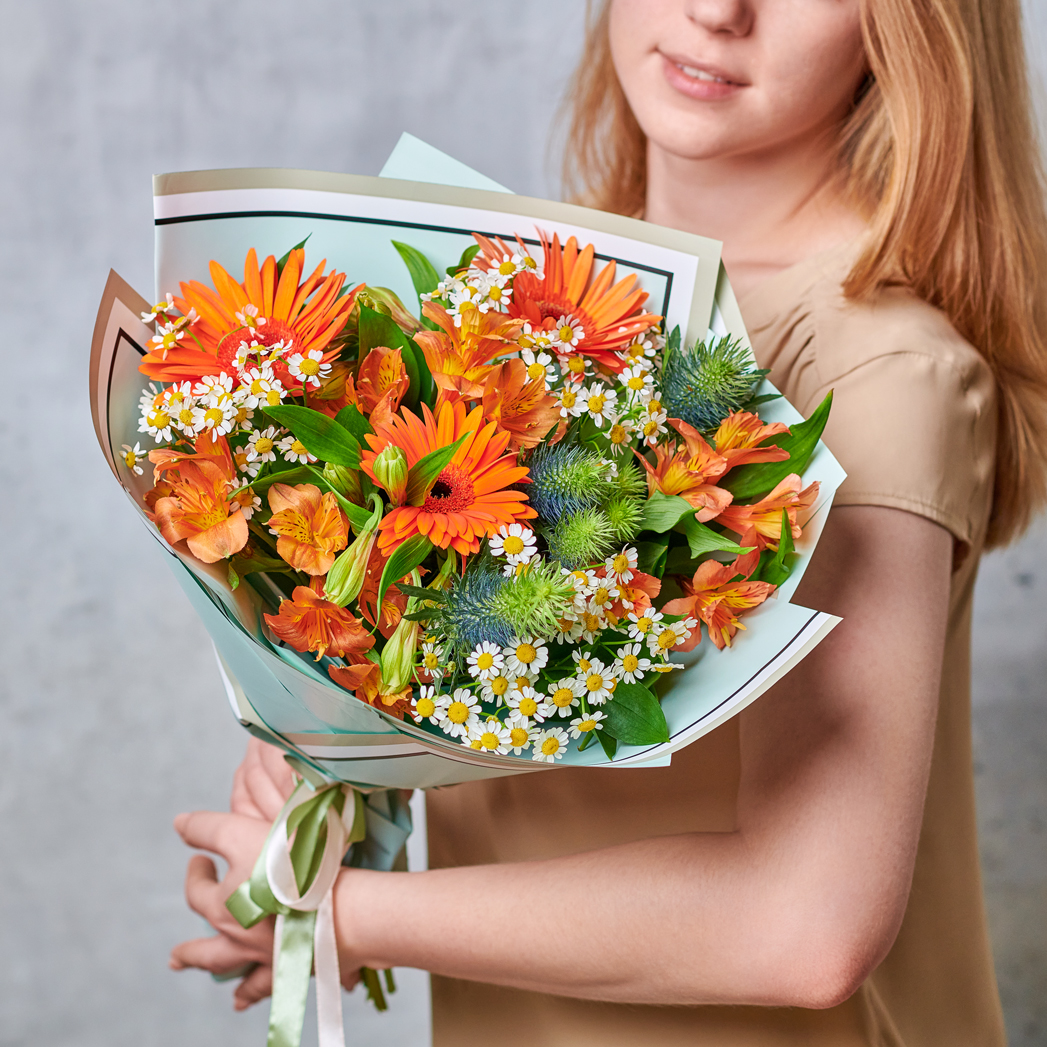 Ярко, тепло и очень привлекательно/ Ловите восхищенные взглядами с солнечными цветами от "Азалии". Сборный букет, вдохновленный летними полями точно станет фаворитом среди цветочных подарков. Возможны небольшие изменения элементов. Общий вид и композиция букета будет сохранена.
