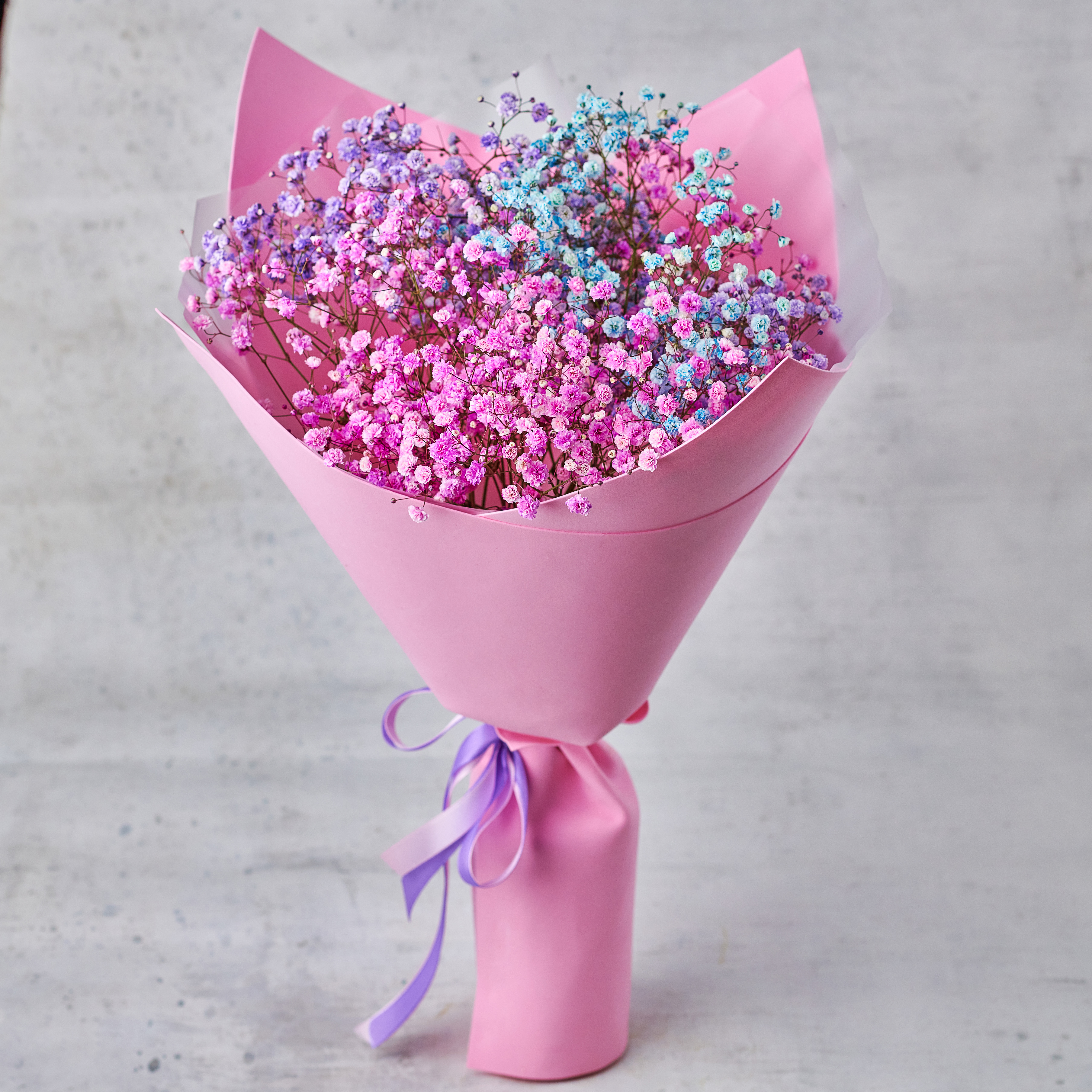 Цветочный рейв из стойкой гипсофилы в лучезарной упаковке. Идеальный вариант для ценителей стойких подарков. Гипсофила продолжит радовать получателя даже после высыхания, сохраняя форму в качестве сухоцвета. Возможны небольшие изменения элементов. Общий вид и композиция букета будет сохранена.