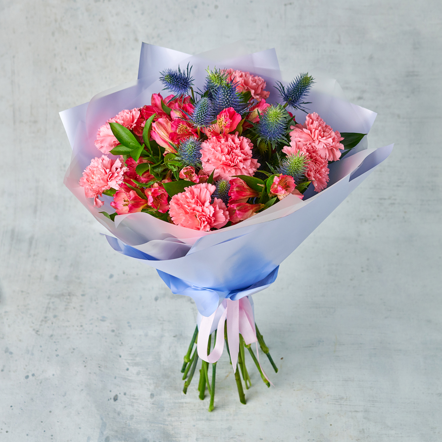 Сборный букет из самых стойких цветов в необычном сочетании. Для любителей долгоиграющих подарков, полевой тематики и вкусных сочетаний. Возможны небольшие изменения элементов. Общий вид и композиция букета будет сохранена.