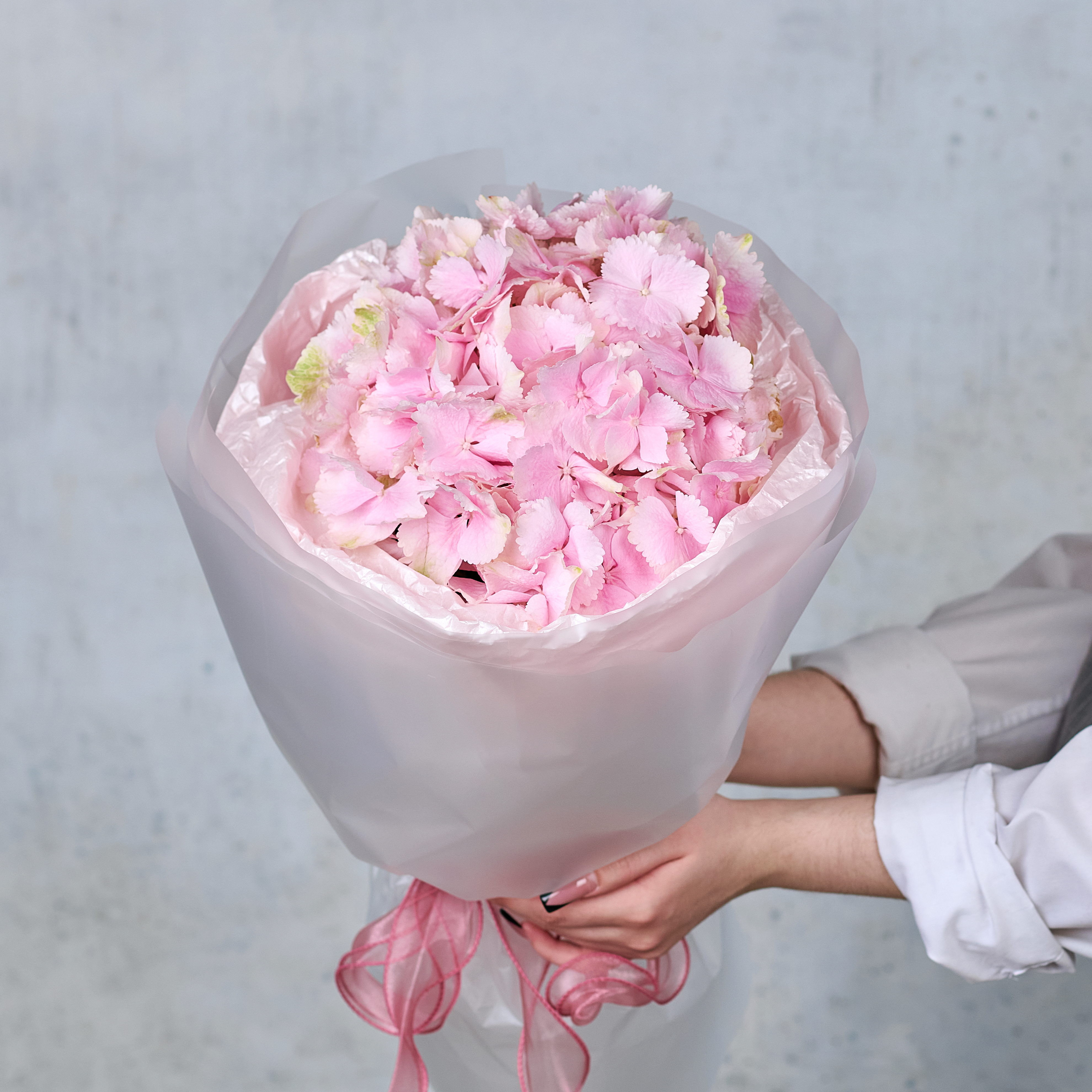 Невероятная гортензия - нежный подарок, готовый впечатлить каждую. Моно букет из гортензии поразит и очарует трепетных натур, лаконичный, стильный, фотогеничный, идеальный. Гортензия прекрасно подойдет для тех, кто нуждается в нежности и заботе. Обратите внимание, что гортензия - сезонный цветок, при необходимости менеджер может предложить замену, исходя из наличия товара.