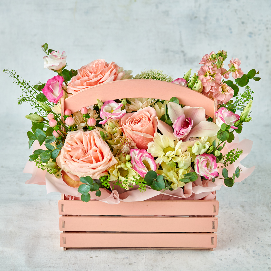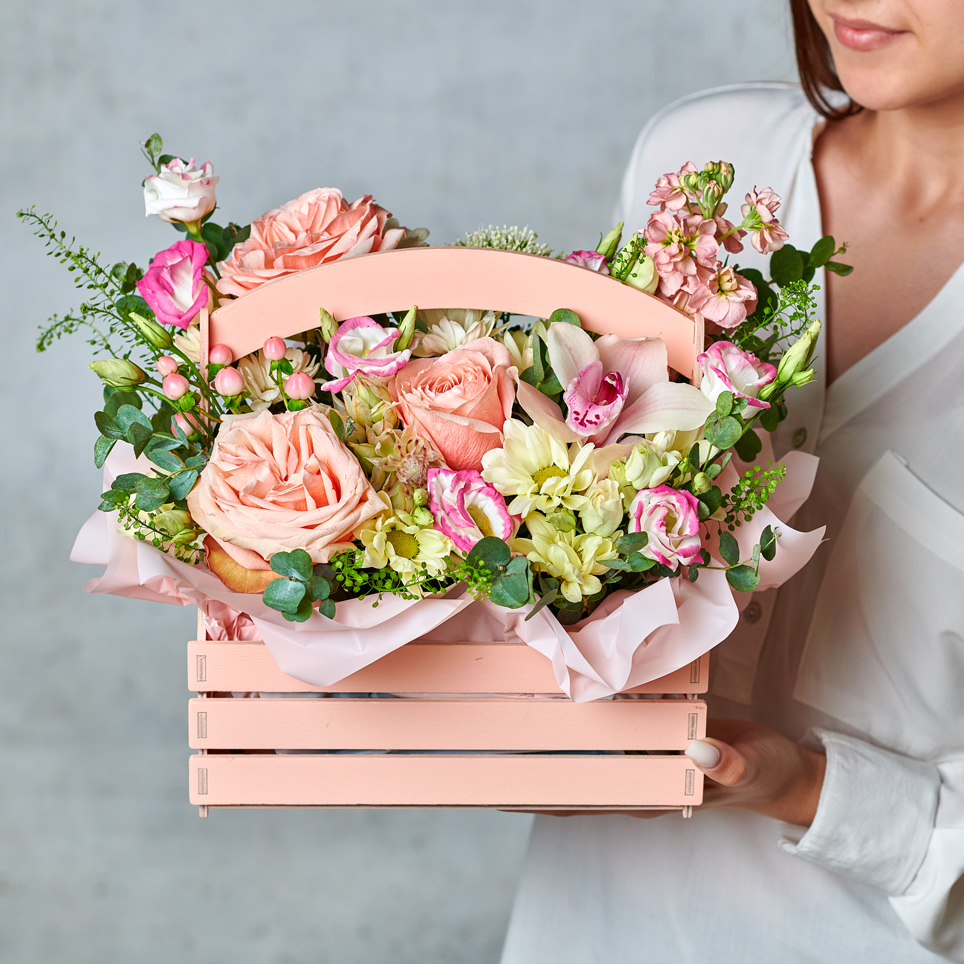 Садовое восхищение в розовых оттенках. Нежно, изысканно и очень тепло - идеальный цветочный подарок для любого повода. Возможны небольшие изменения элементов. Общий вид и композиция букета будет сохранена.